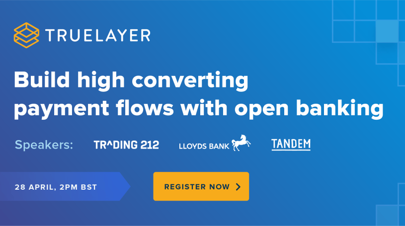 Join this webinar tomorrow, 28 April, in partnership with Tandem, Lloyds Bank, and Trading 212 where we'll uncover how open banking differs from other methods like cards and wallets, and give you the blueprint for creating payment experiences customers love.