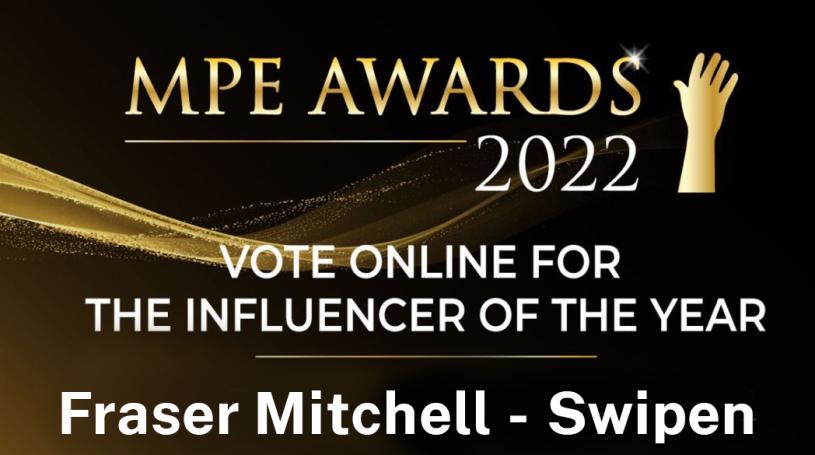 Swipen’s managing director, Fraser Mitchell, has been nominated for The Influencer of the Year at the #MPEAwards. Voting is open until 31st May.