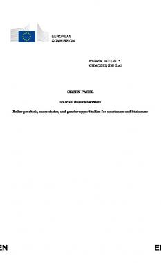 European Commission Green Paper on retail financial services, 10-Dec-15